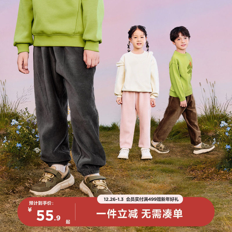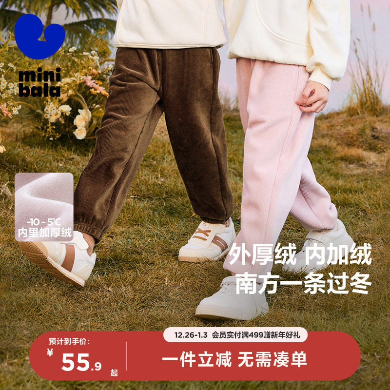 迷你巴拉巴拉男女童裤子加厚绒长裤儿童天鹅绒秋冬儿童保暖长裤