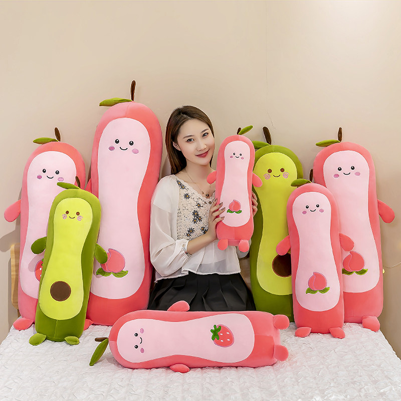 水果草莓牛油果抱枕长条枕头毛绒玩具睡觉夹腿床上布娃娃玩偶桃子