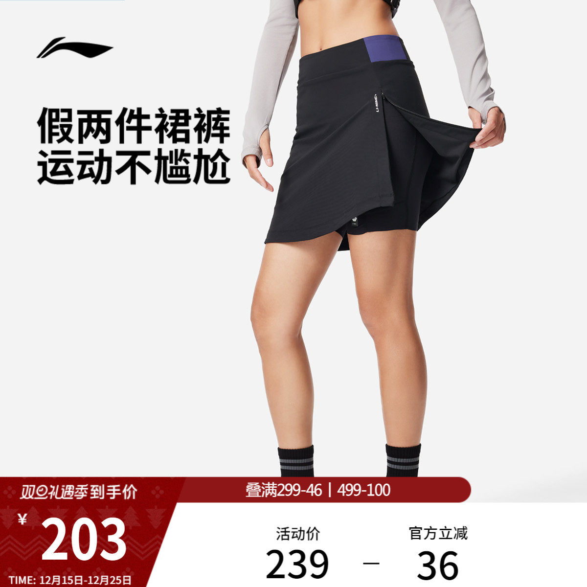 李宁裙裤一体假两件女士2025新款健身系列防走光秋季假两件运动裙