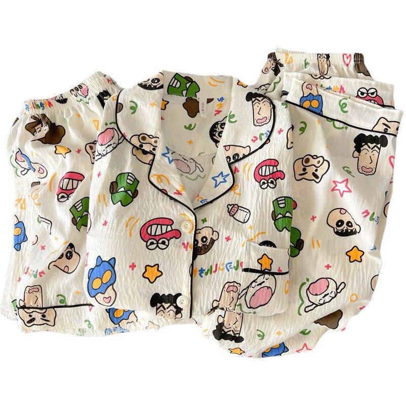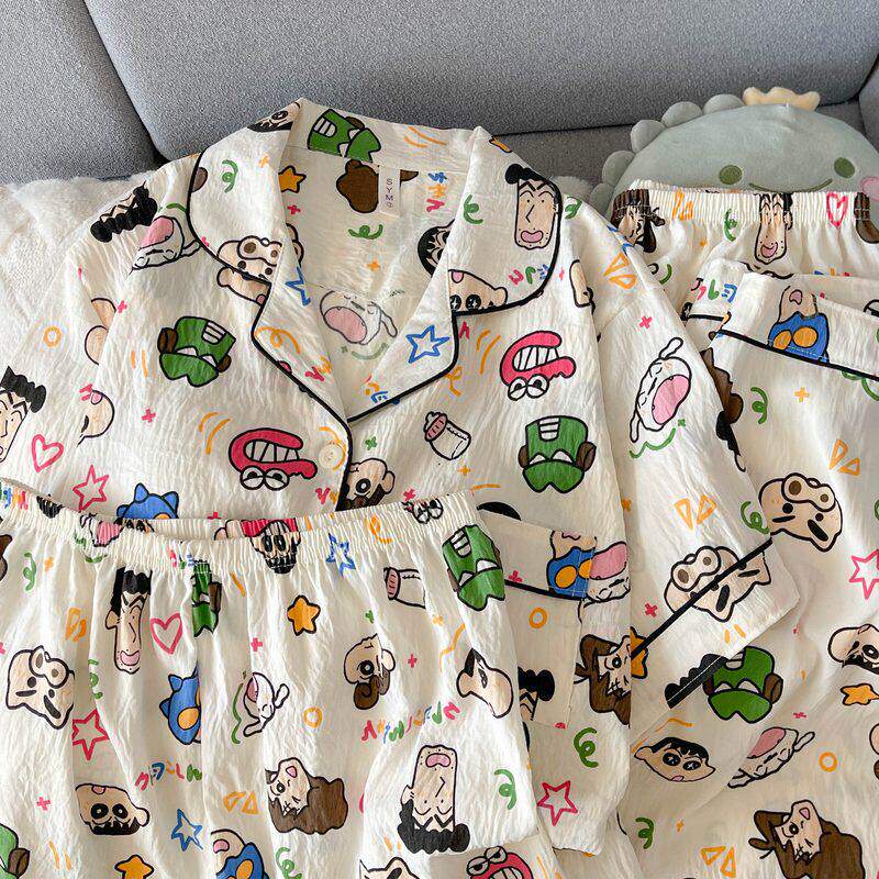 红豆日系动感超人带胸垫大码睡衣女夏季短袖云朵纯棉纱可爱小新三