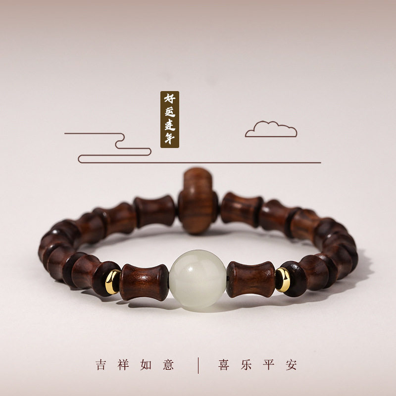 天然绿檀木手串文玩盘玩佛珠新中式男女手链金丝楠木转运珠檀香