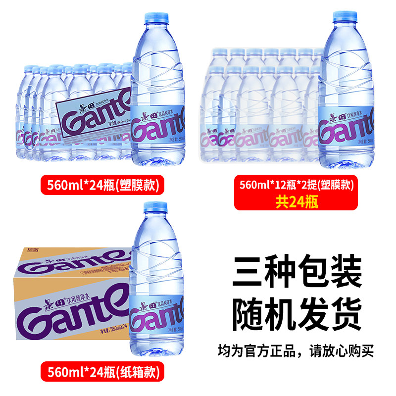 景田饮用纯净水560ml*24瓶整箱特批价小瓶饮用水非矿泉水包邮