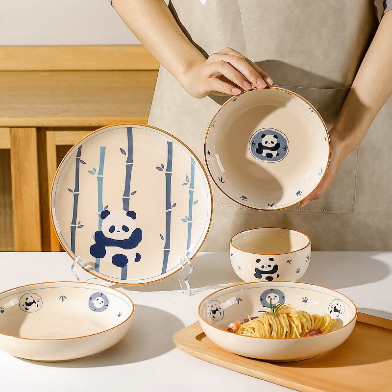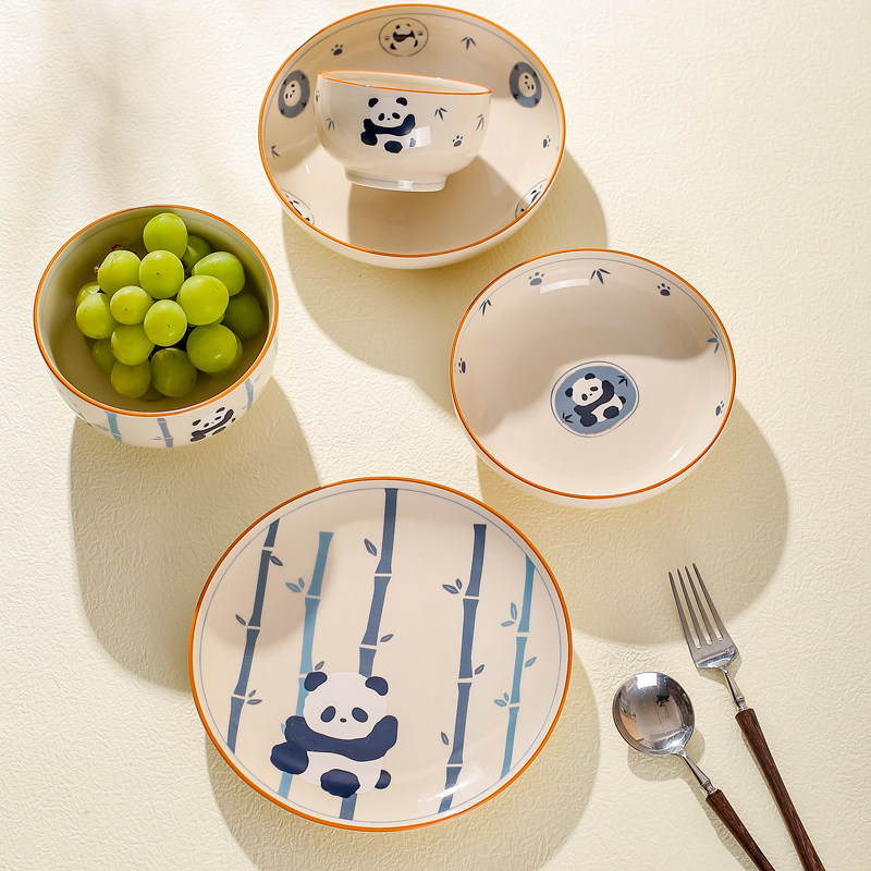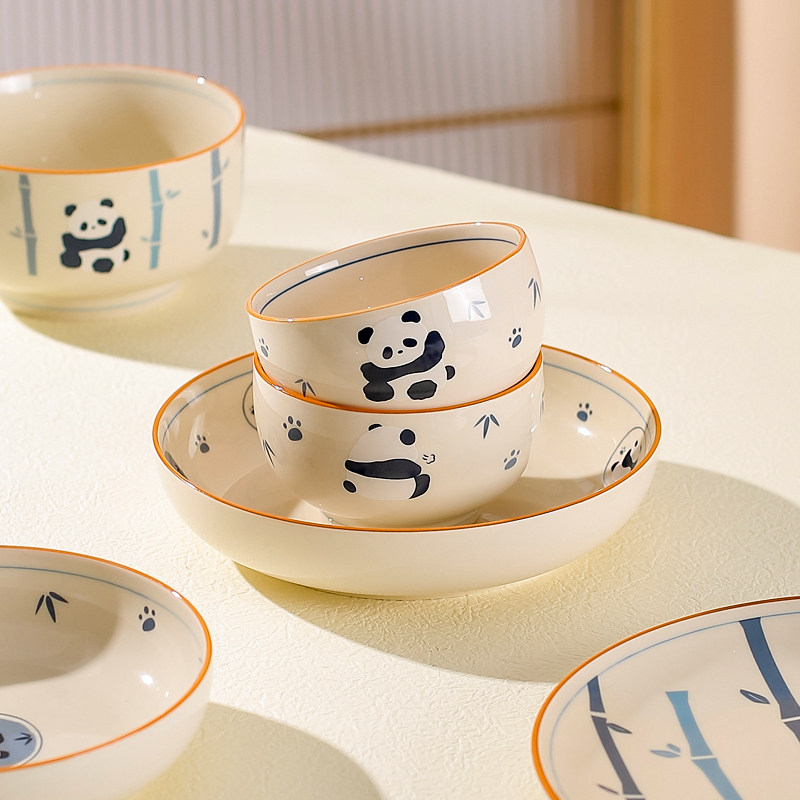 川岛屋熊猫碗家用2026新款高颜值可爱餐具儿童米饭碗面碗盘子套装