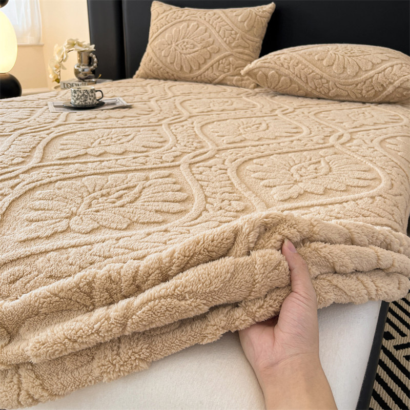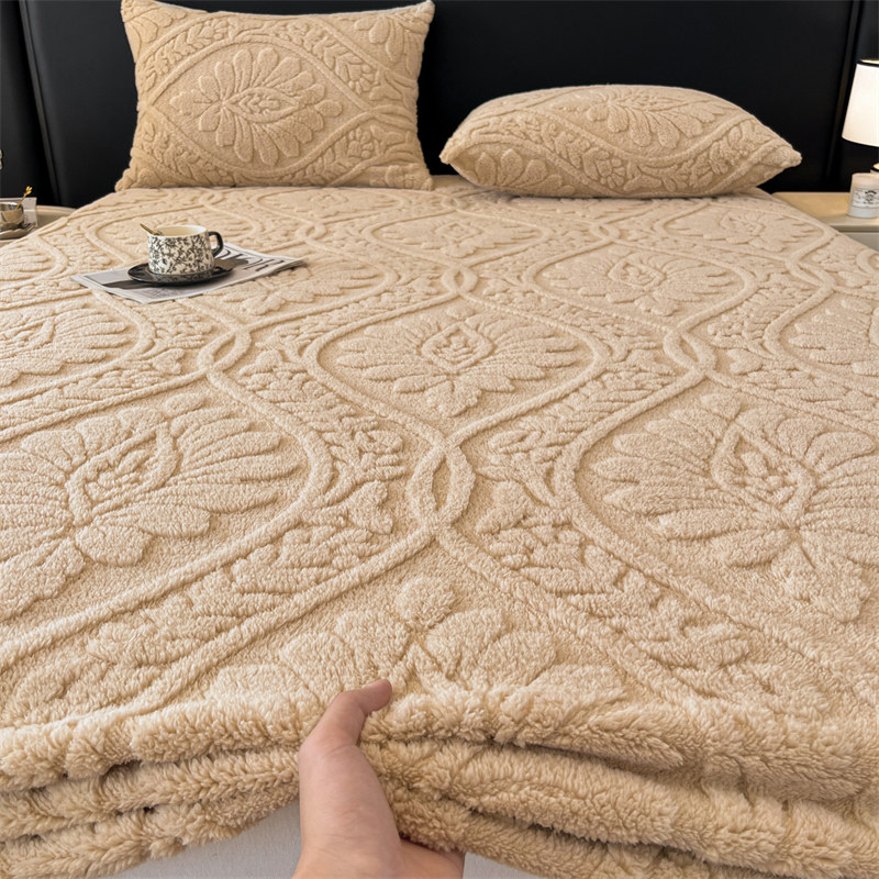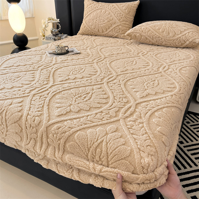 简约风加绒塔芙绒床笠单件冬季牛奶绒加厚珊瑚绒防滑床垫保护套罩