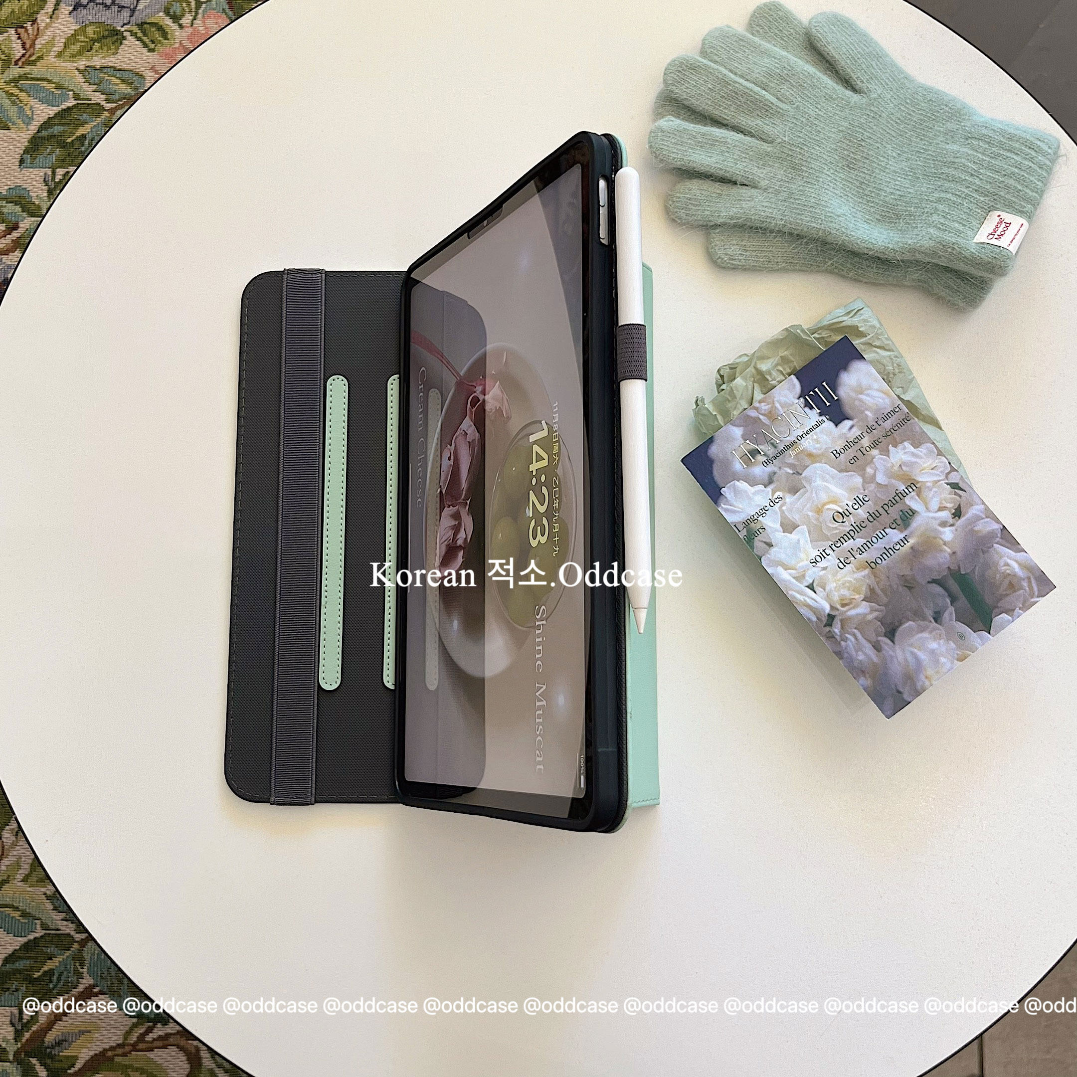 odd「豆沙绿色 I 韩国的春天」翻盖支撑/ipad pro11皮套a16/11代/10.9寸全包平板壳MINI6/7/10.2寸/5/2024