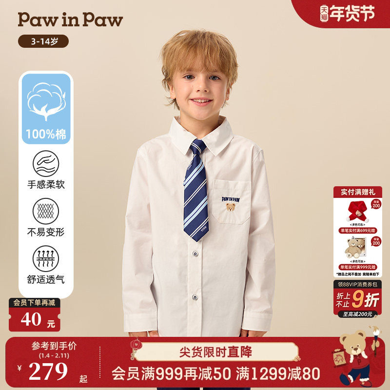 【商场同款】PawinPaw卡通小熊童装25年秋季新款男童白色衬衫