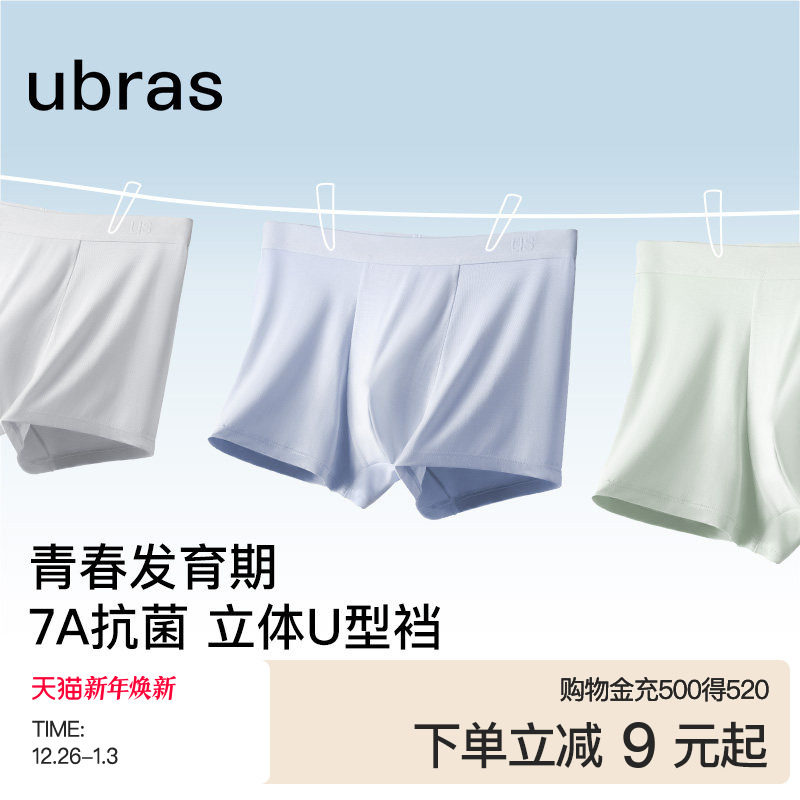 ubras青少年莫代尔男士内裤纯棉抗菌裆薄款透气7A平角短裤