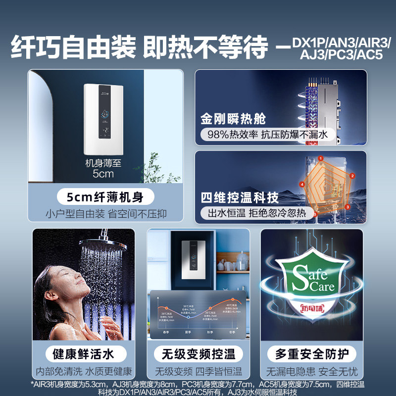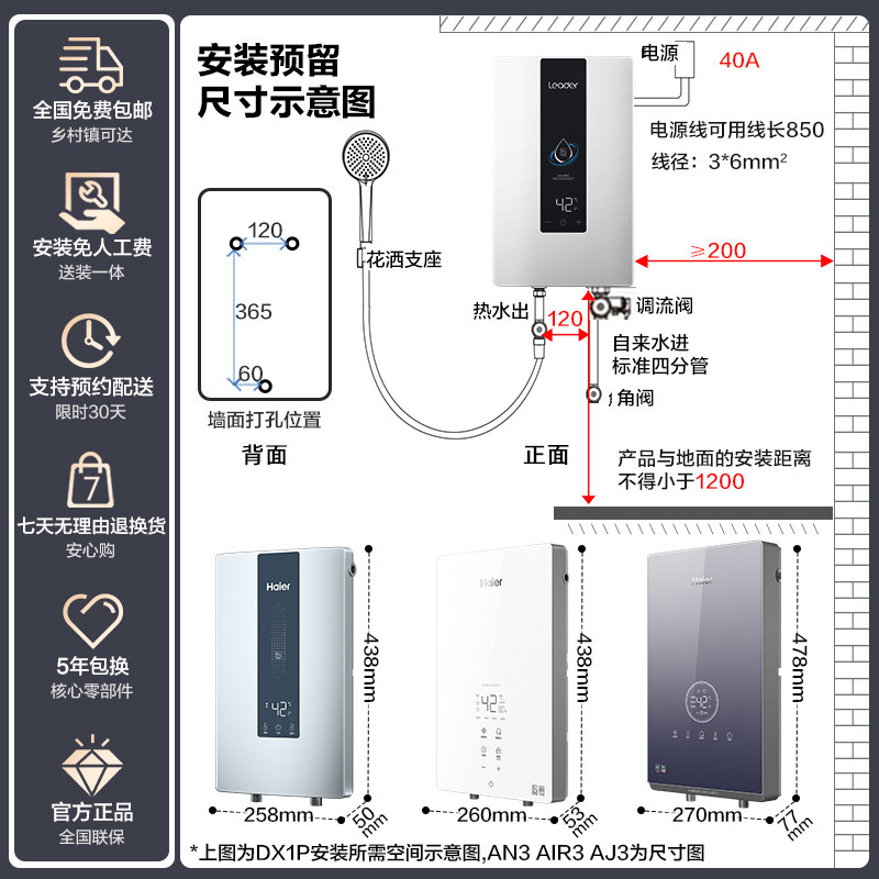 海尔出品统帅即热式电热水器速热恒温家用卫生间洗澡免储水DX1P
