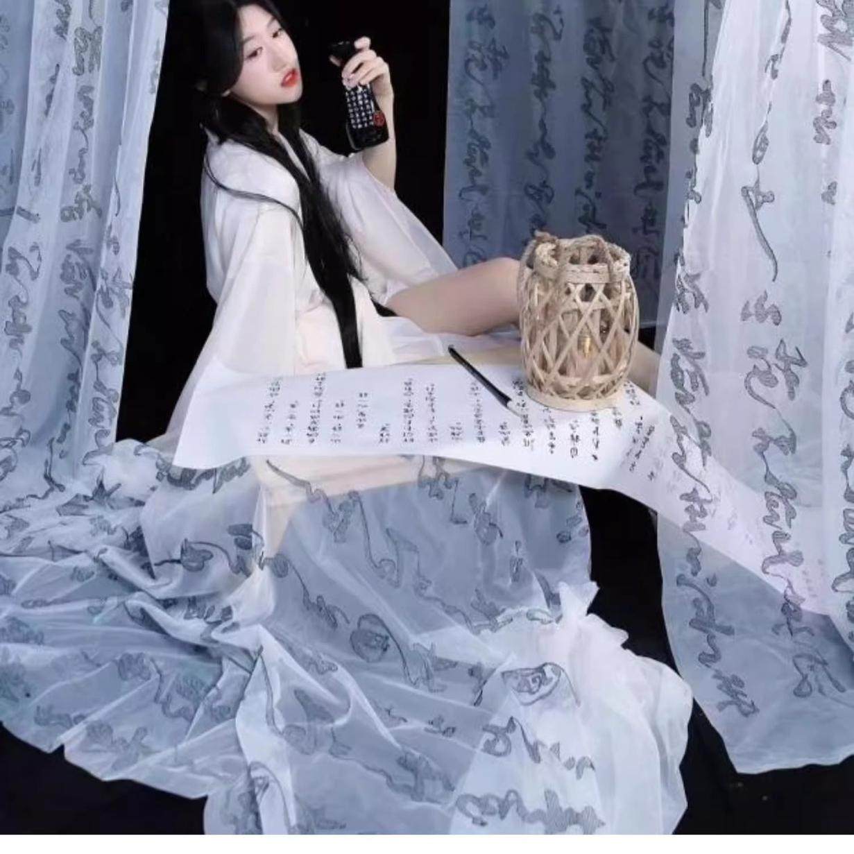 古风书法纱幔背景布汉服婚庆道具古装挂布古董文玩直播间装饰道具