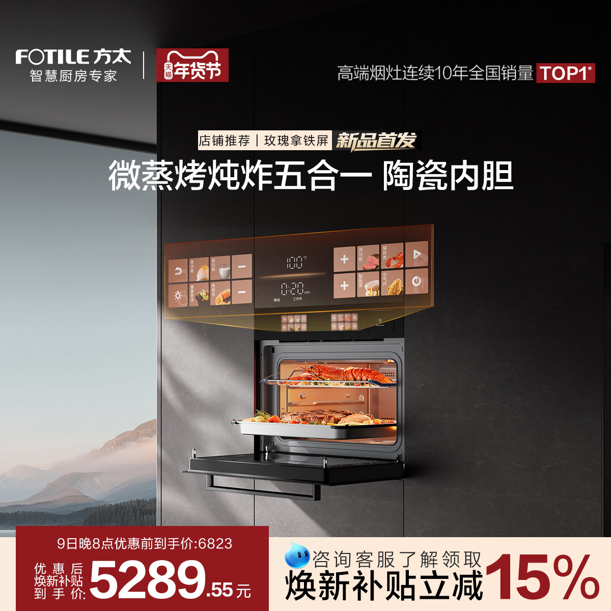 【新品】方太微蒸烤一体机G2P嵌入式微波炉炖炸五合一官方旗舰