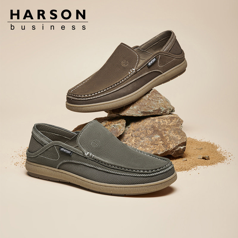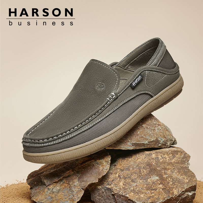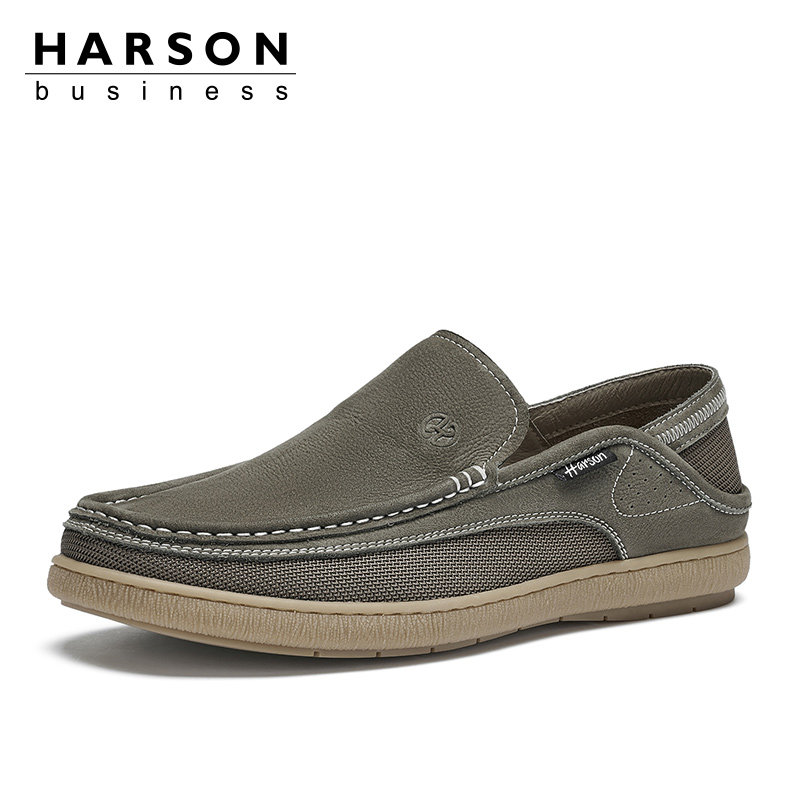 哈森男鞋软底豆豆鞋男士休闲皮鞋真皮一脚蹬懒人鞋复古休闲鞋男款