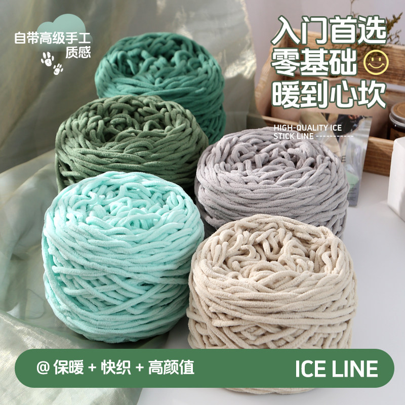 5送1大卷新冰条线粗毛线团3.8两花色围巾线钩拖鞋线DIY手工编织线