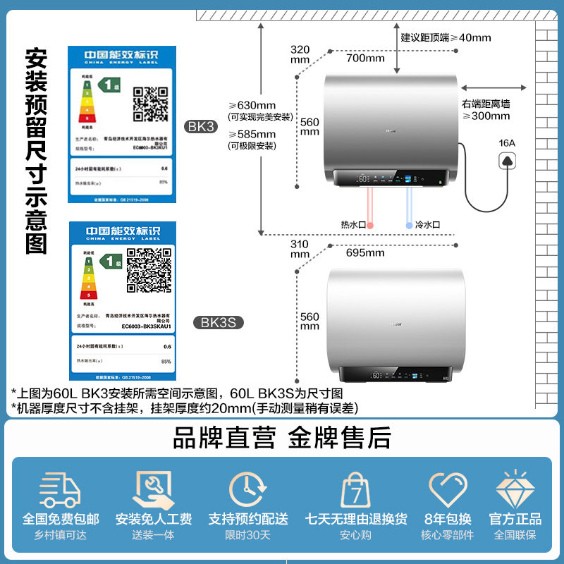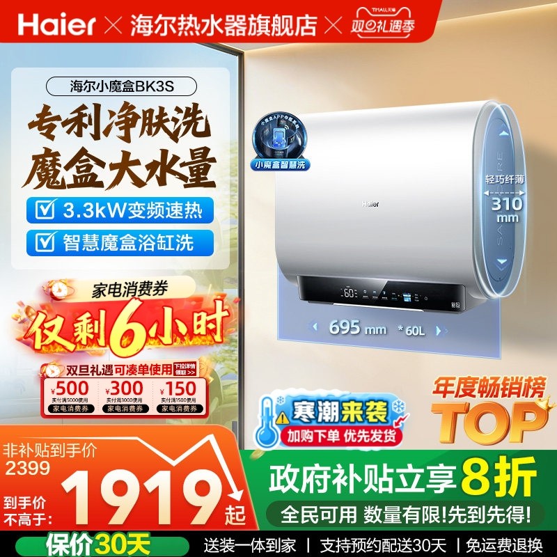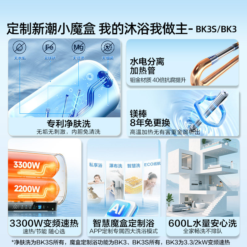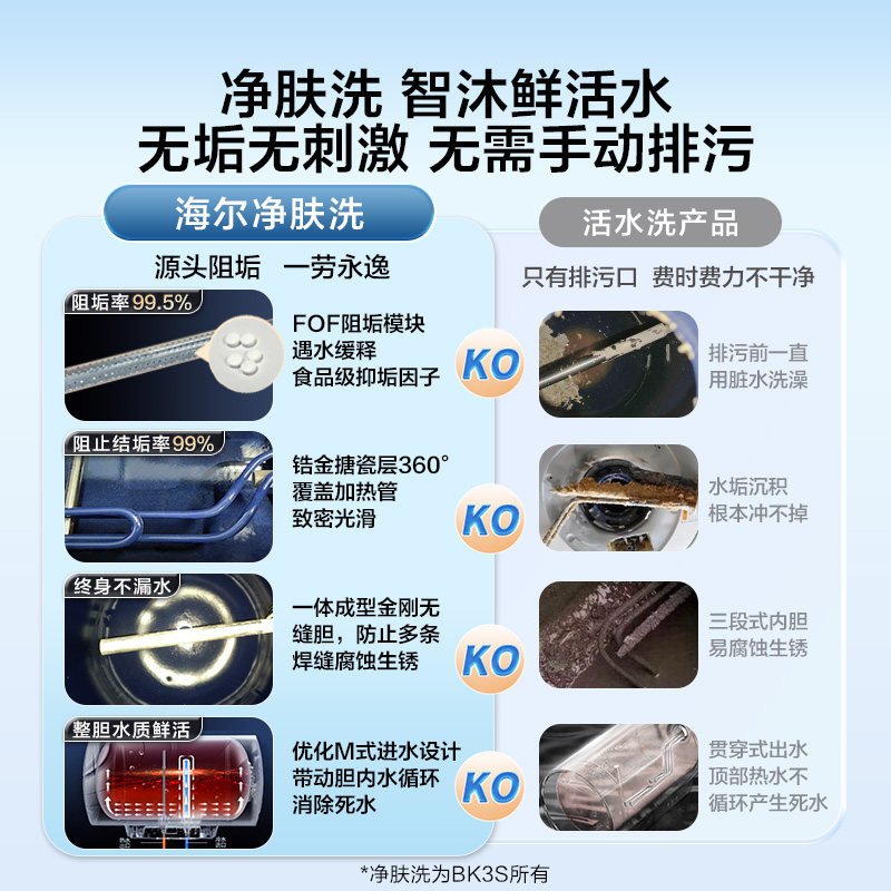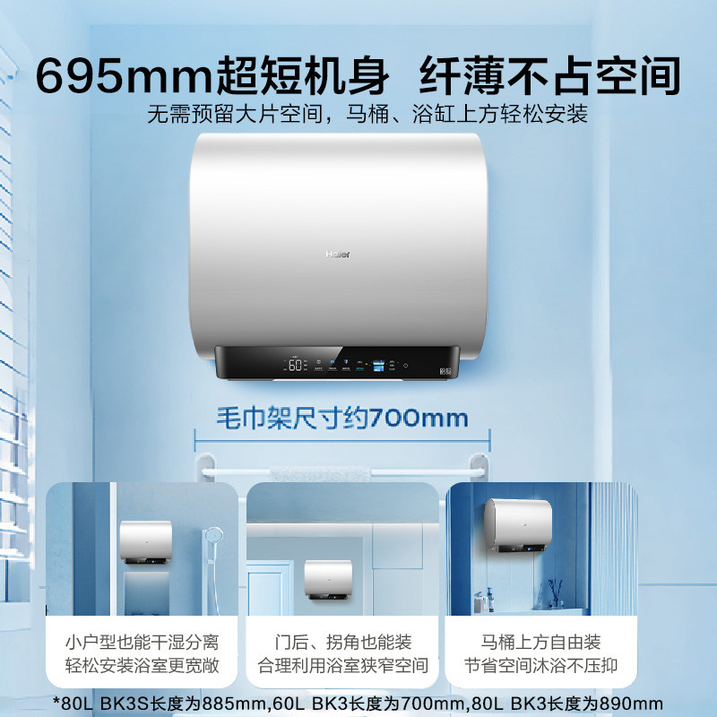 海尔电热水器双胆小魔盒家用电净肤洗官方卫生间洗澡60升一级BK3S