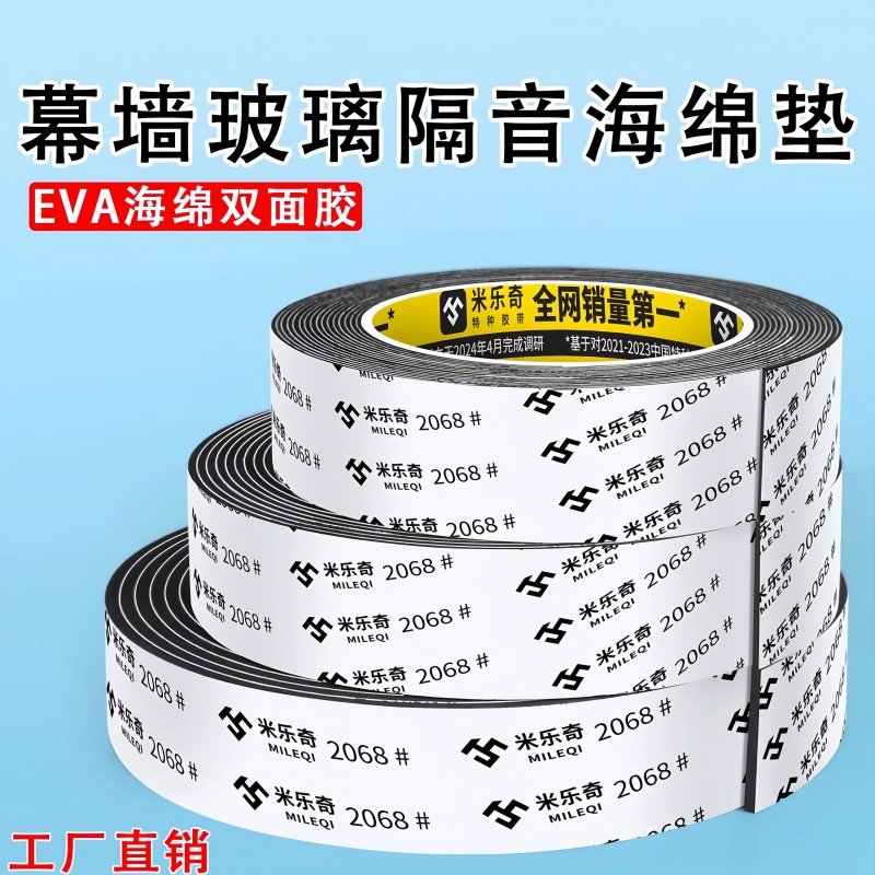 幕墙玻璃隔音泡棉双面胶阳光房防撞EVA黑色海绵胶带锂电池减震垫