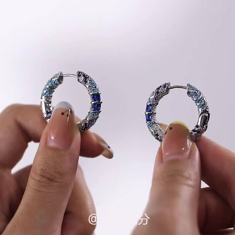 「梵高星空」民族风景泰蓝珐琅花纹耳圈高颜值重工显脸小气质耳饰