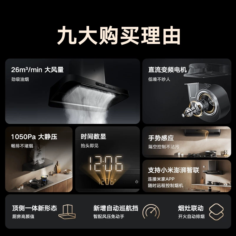 小米米家巨能吸变频欧式S10抽油烟机家用大吸力顶吸自清洁