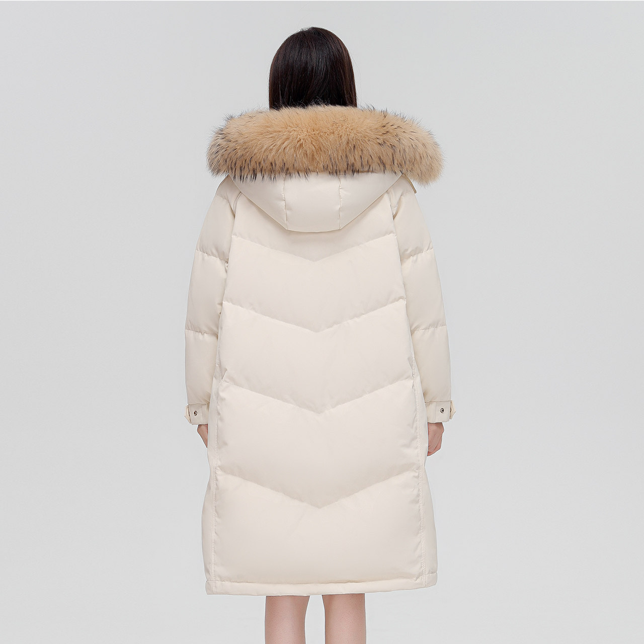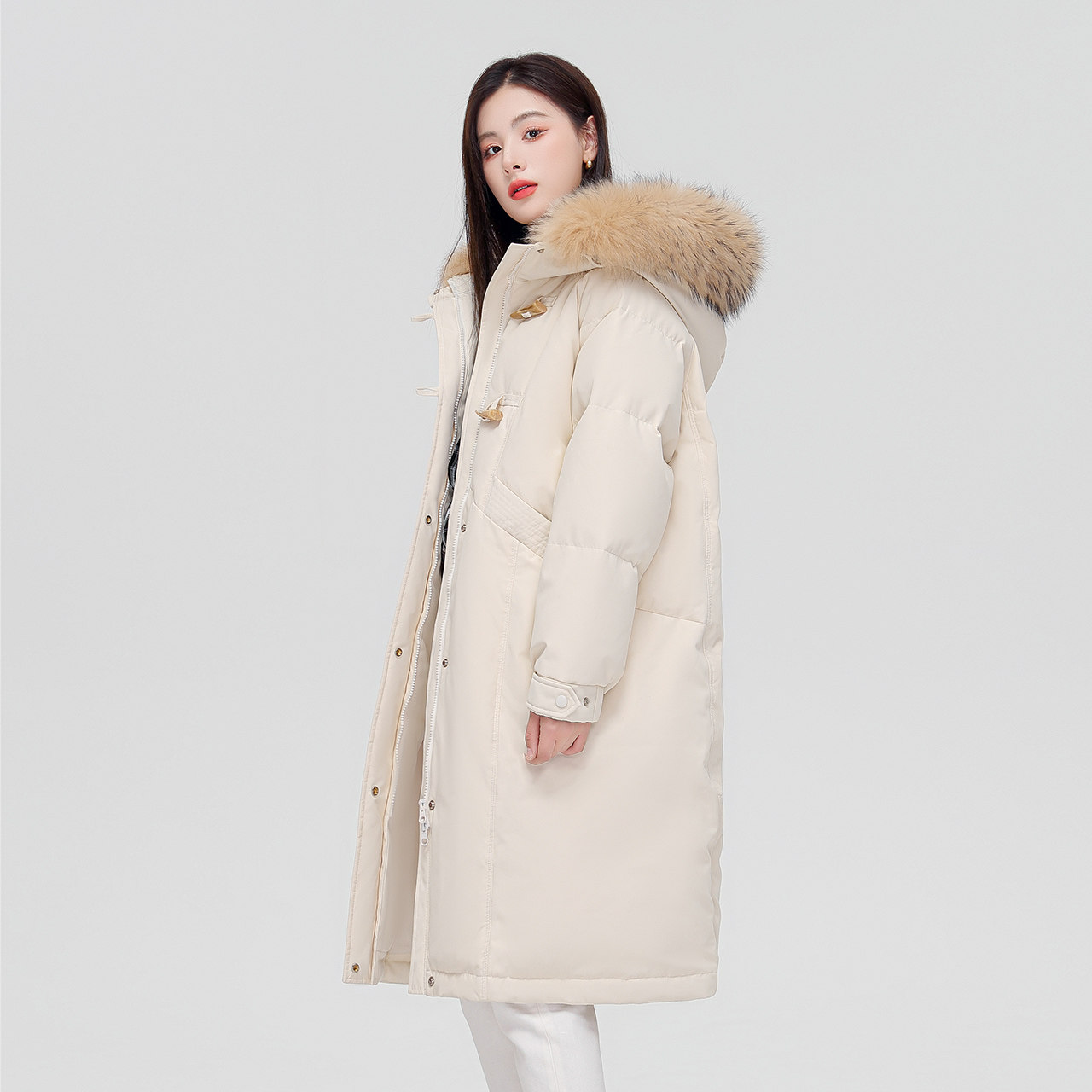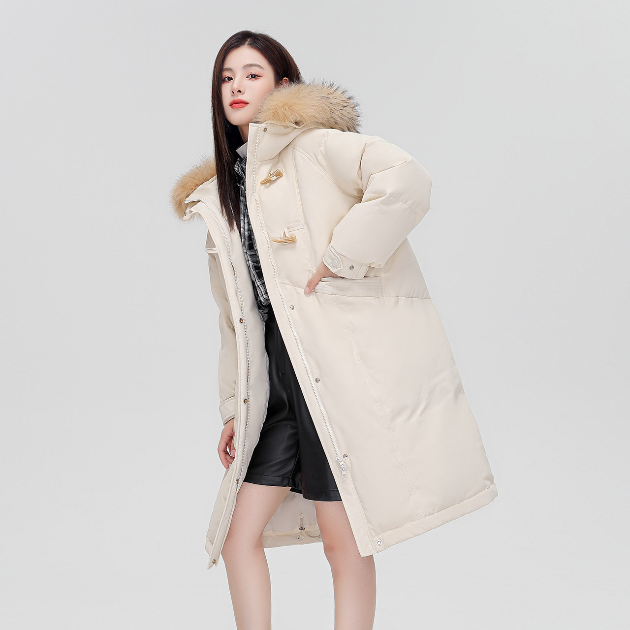 雪中飞冬新款时尚百搭宽松奢华毛领女士学院风牛角扣羽绒服