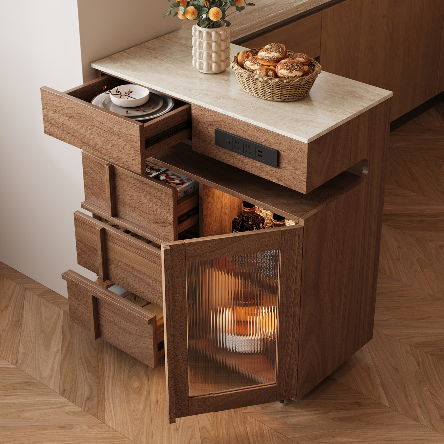 分离式岛台圆餐桌一体伸缩家用中古风厨房餐厅高级感实木餐岛一体