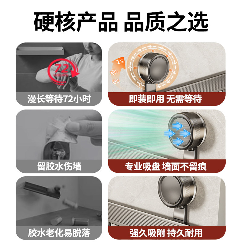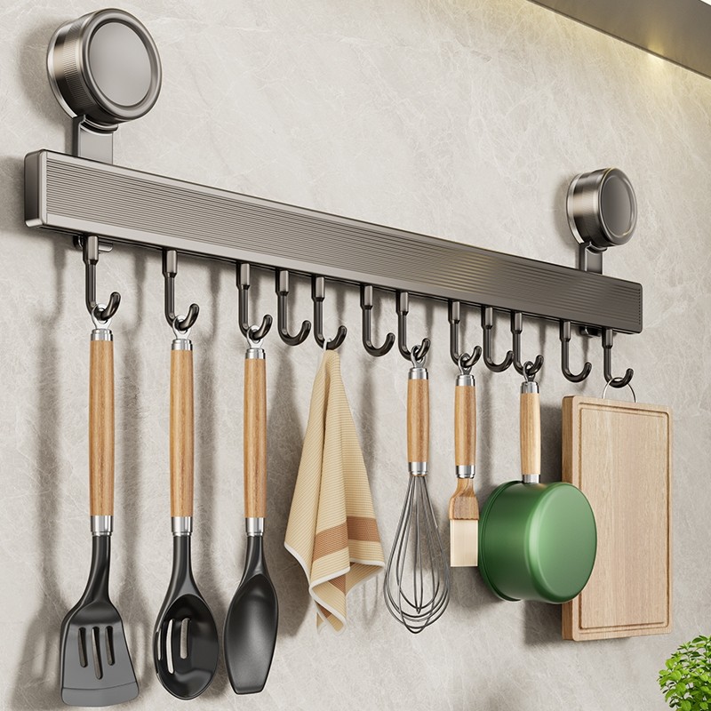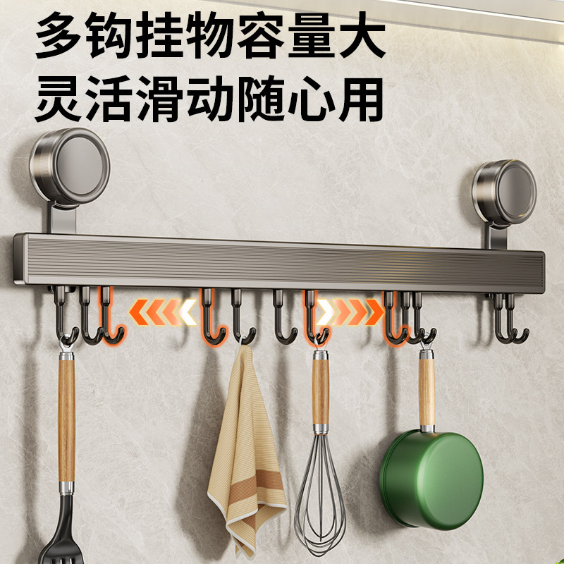 德国品质吸盘厨房挂钩挂杆免打孔厨房置物架锅铲挂架壁挂式收纳架