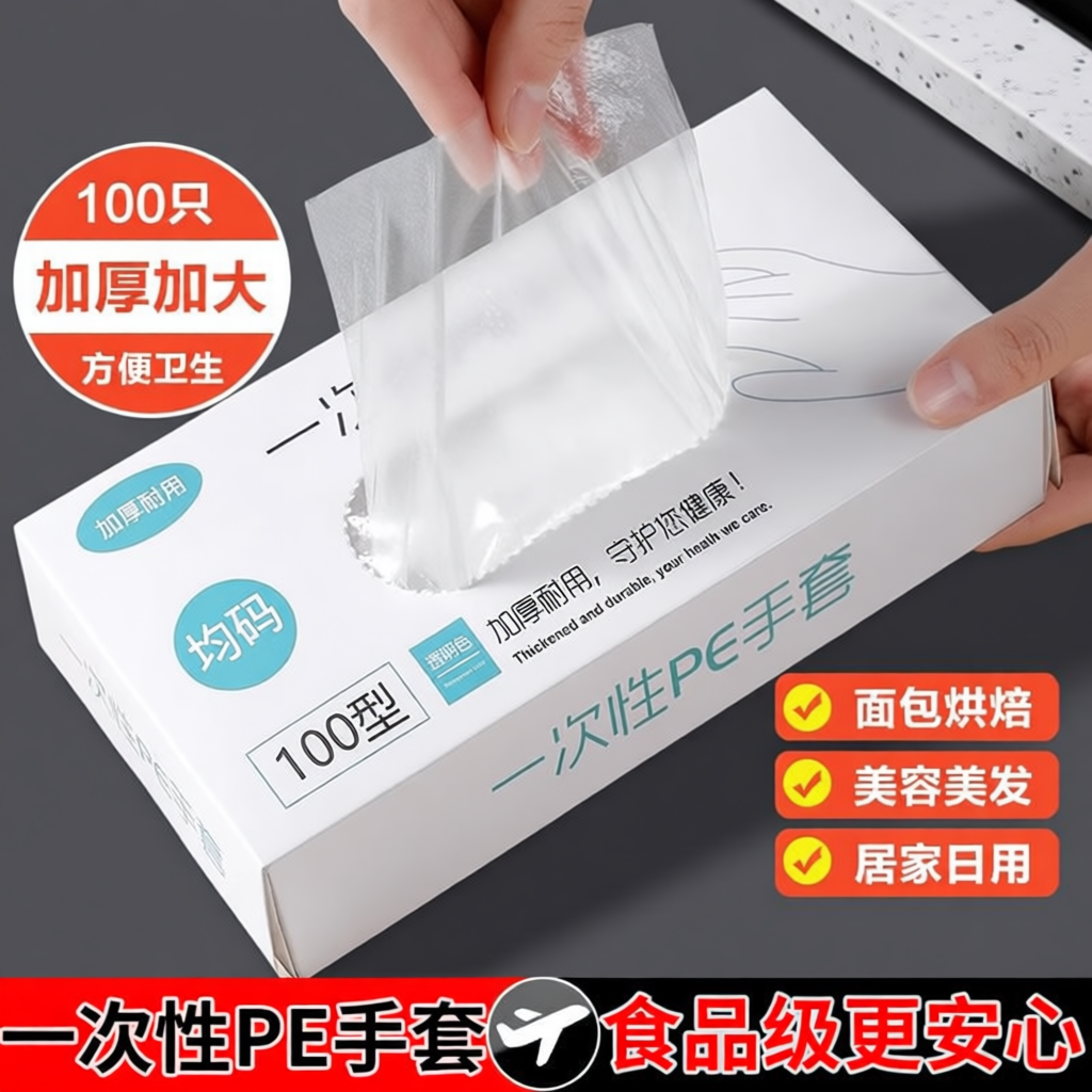 一次性手套pe食品级餐饮专用加厚塑料薄膜商用厨房家用盒装抽取式