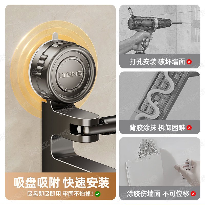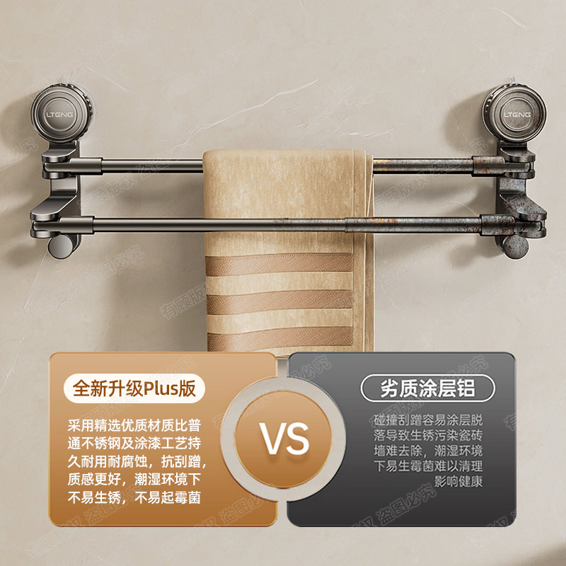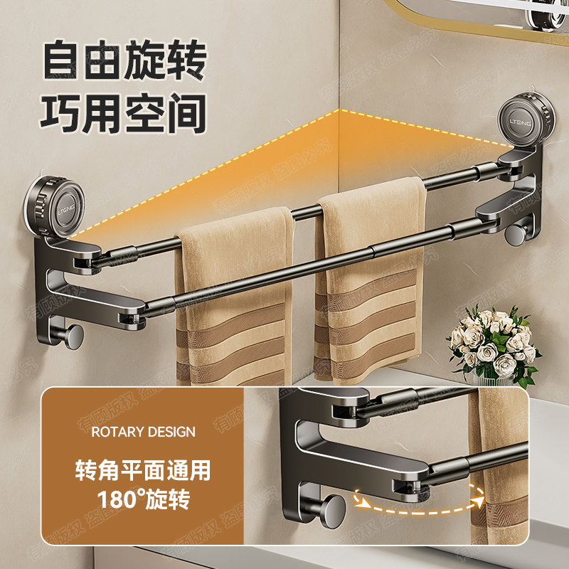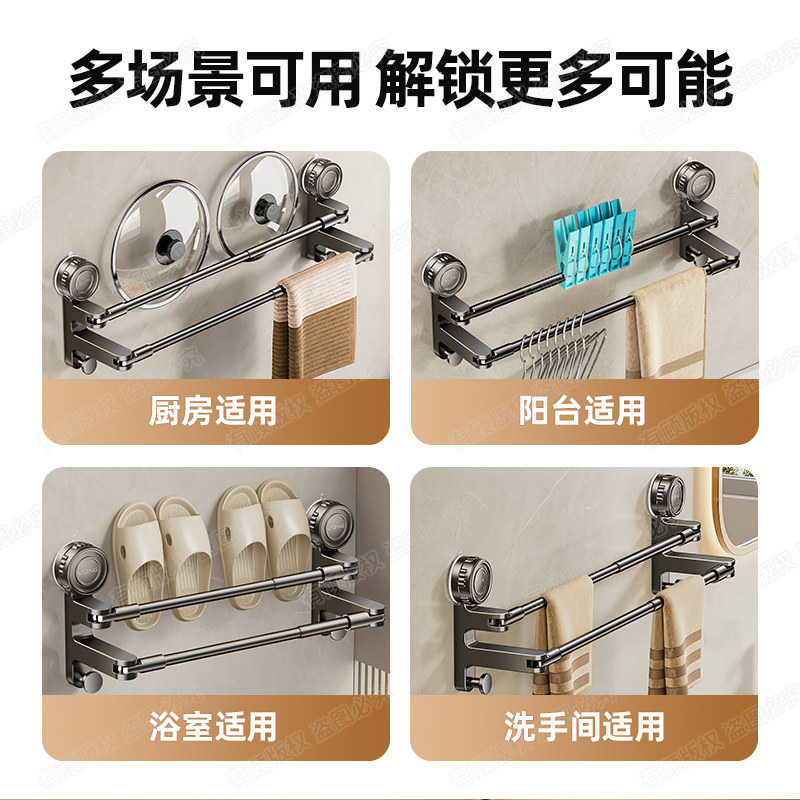 吸盘毛巾架卫生间免打孔浴室伸缩毛巾杆置物架洗手间浴巾收纳挂架