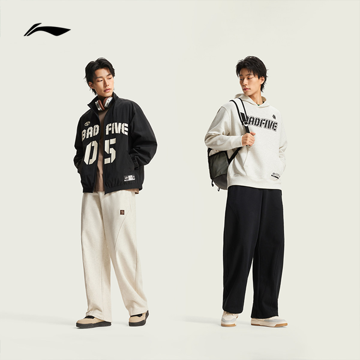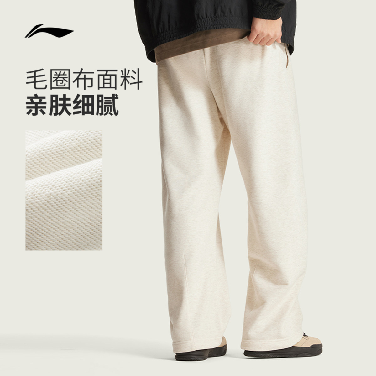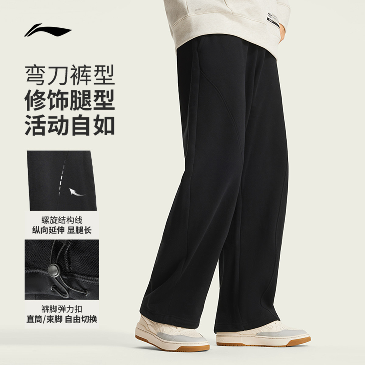李宁反伍BADFIVE卫裤男士裤子春季毛圈直筒阔腿弯刀针织运动长裤