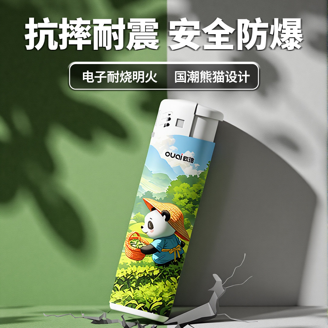 欧琦明火打火机厂家批发高档加厚耐用一次性火机正品高颜值熊猫