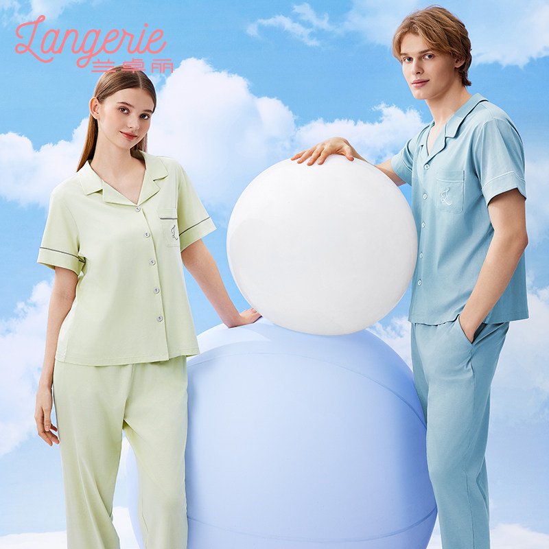 兰卓丽女士家居服套装上衣短袖长裤丝光棉睡衣可外穿夏季薄荷曼波