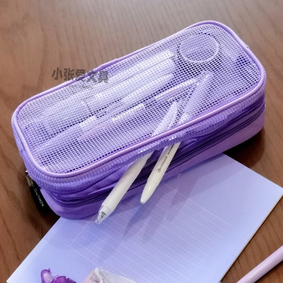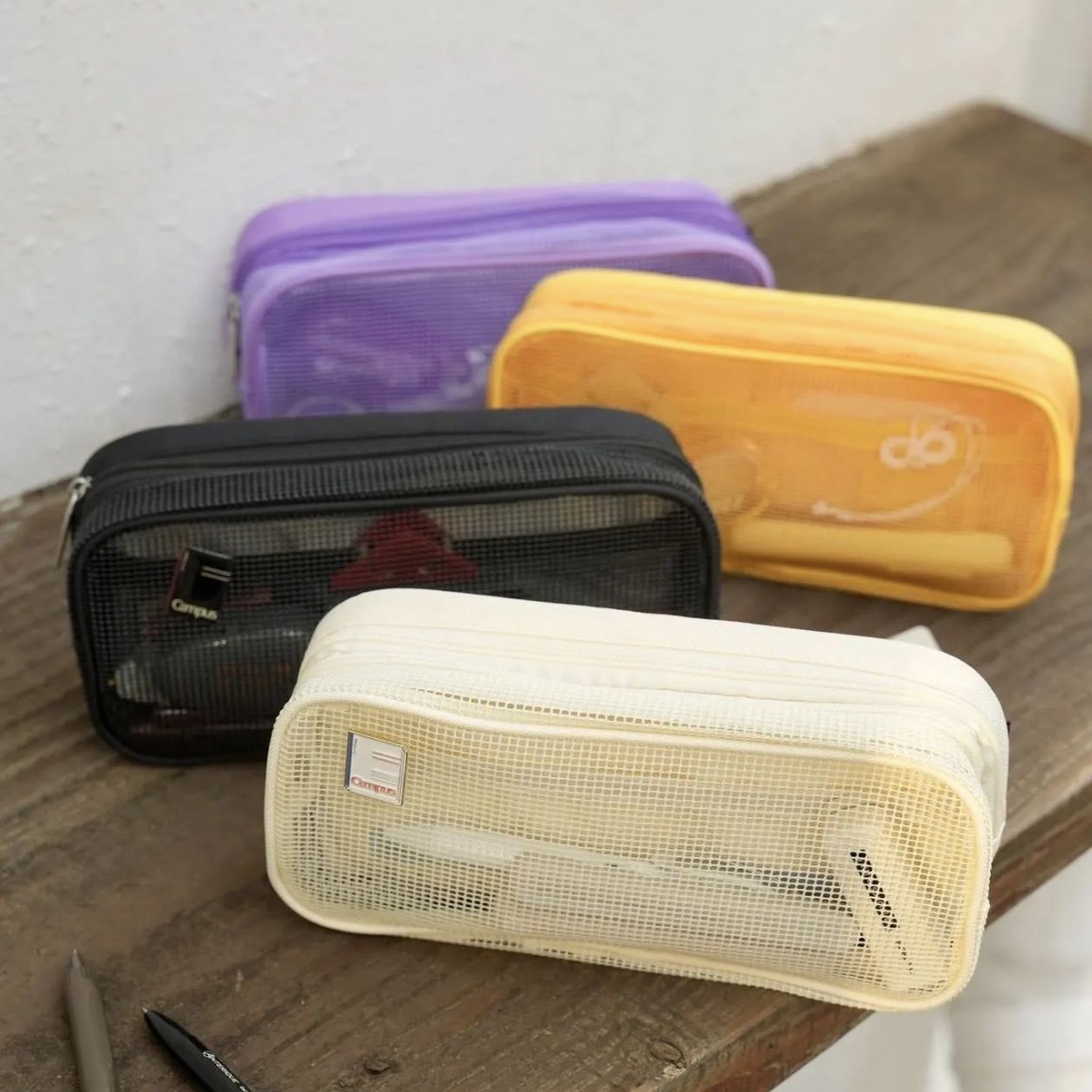 日本KOKUYO国誉网格笔袋Campus系列学生用大容量双层分类收纳笔袋