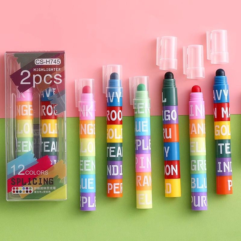 拼接固体荧光笔糖果色创意可爱做笔记手账划重点彩色记号笔果冻笔