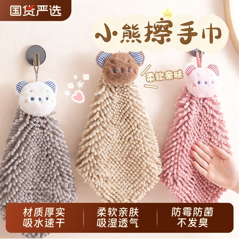 雪尼尔擦手巾挂式吸水布厨房卫生间高颜值可爱儿童毛巾加厚搽手帕
