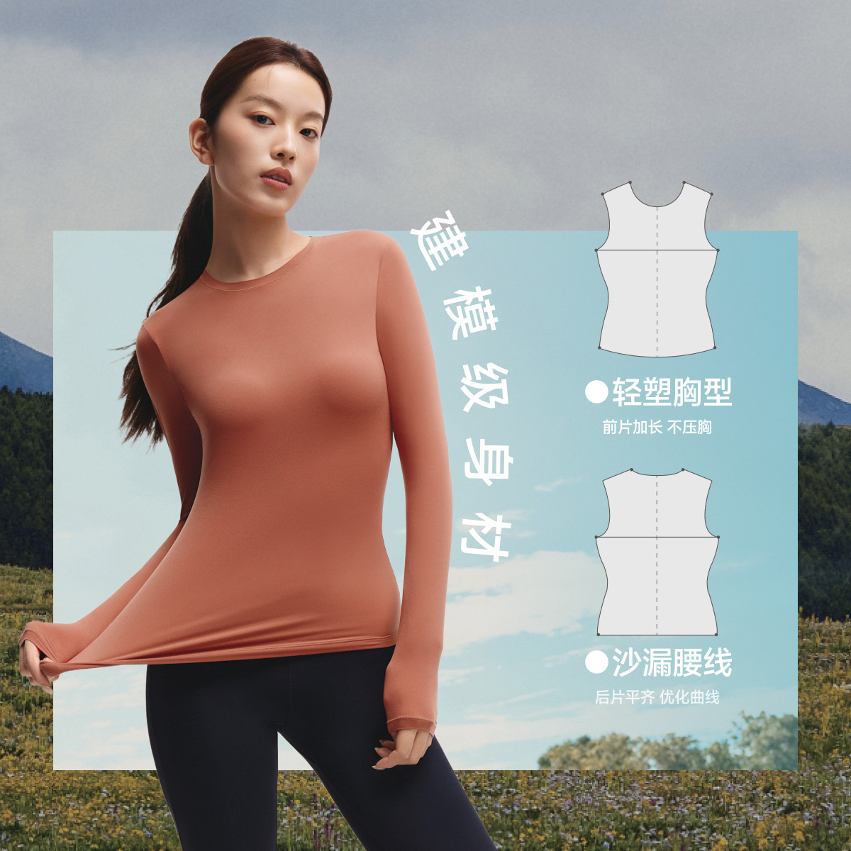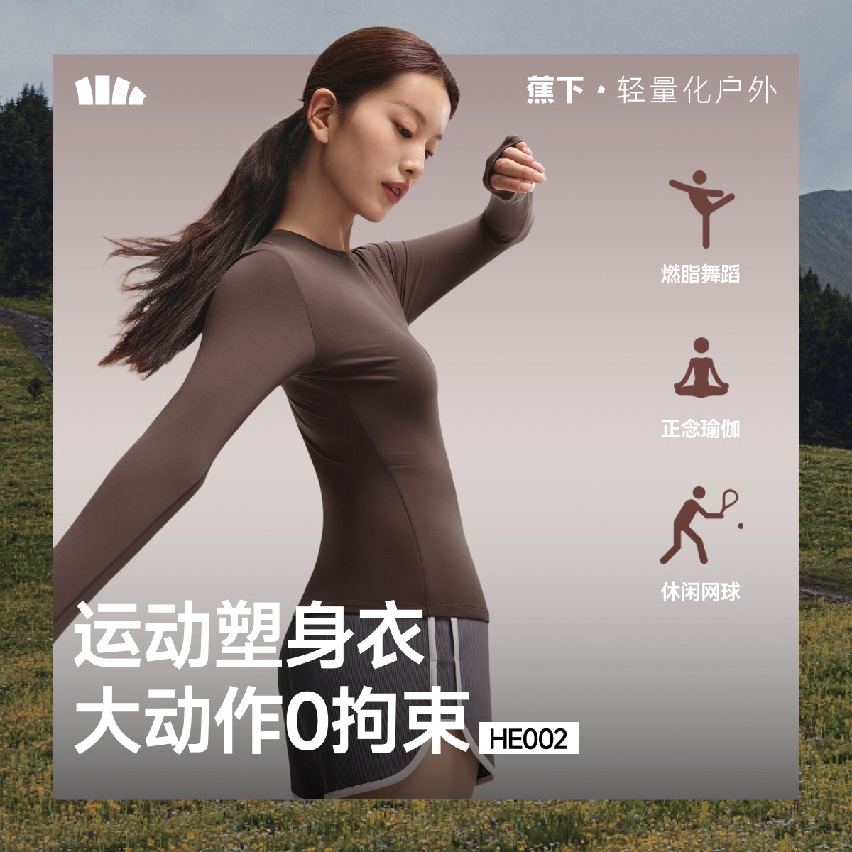 蕉下塑身速干衣女运动健身裸感收腰塑形上衣户外打底衫跑步训练服