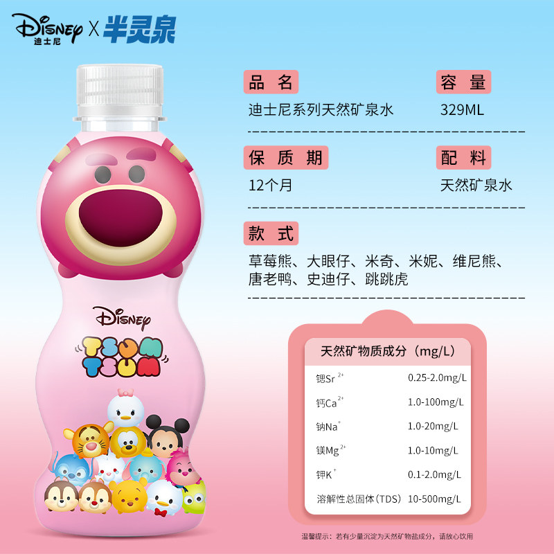 可爱草莓熊迪士尼系列天然矿泉水家庭儿童饮用水非纯净整箱小瓶水
