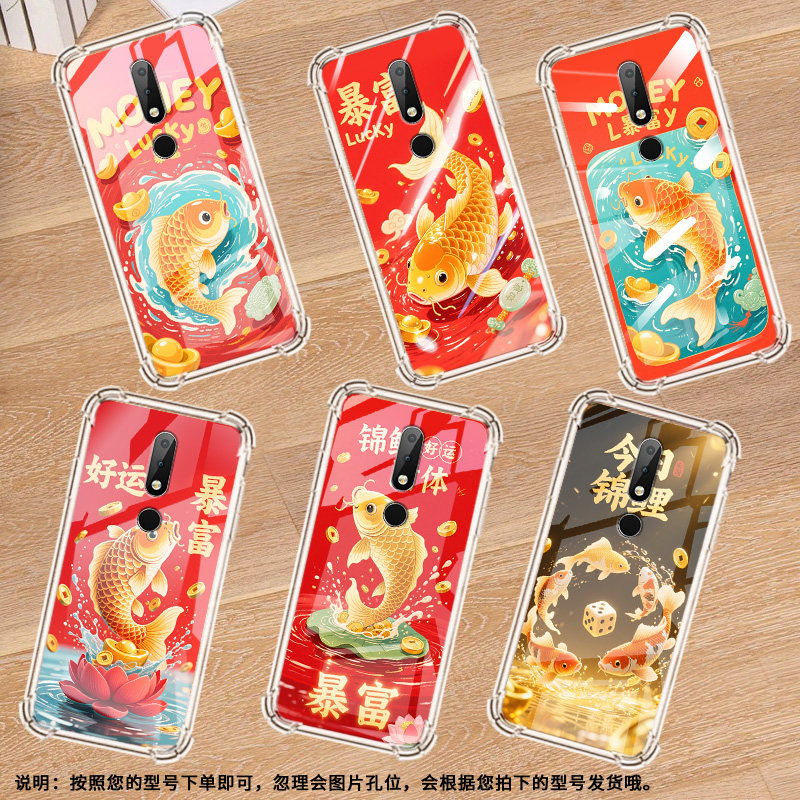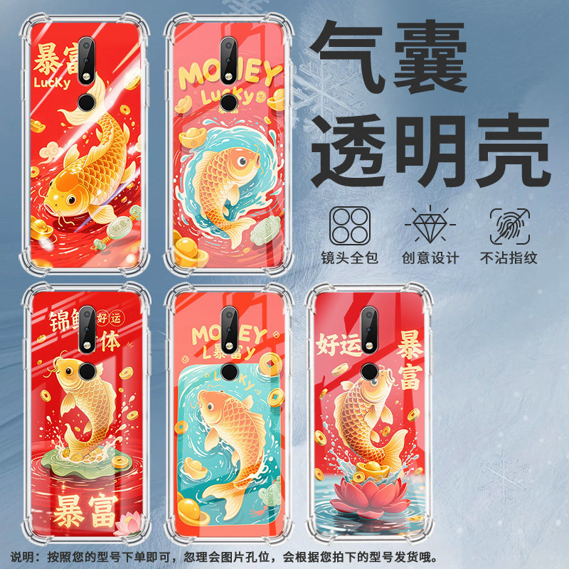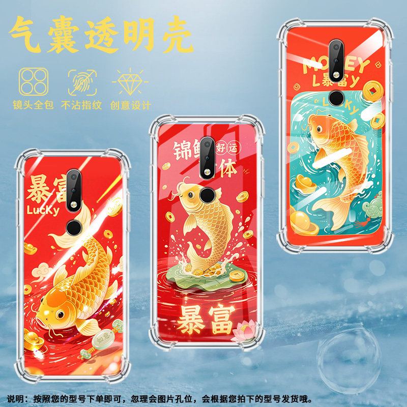 适用诺基亚X6手机壳全包边气囊壳金色锦鲤Nokia防摔中国风时尚诺基亚X6男女款高级感潮流简约硅胶保护套