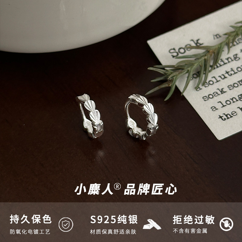小麋人925纯银车花爱心耳扣女耳环耳饰时尚个性ins风气质简约新款