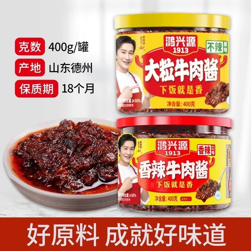 鸿兴源大粒香辣牛肉酱400g下饭拌面酱大块香菇酱家用佐餐蘸料调味