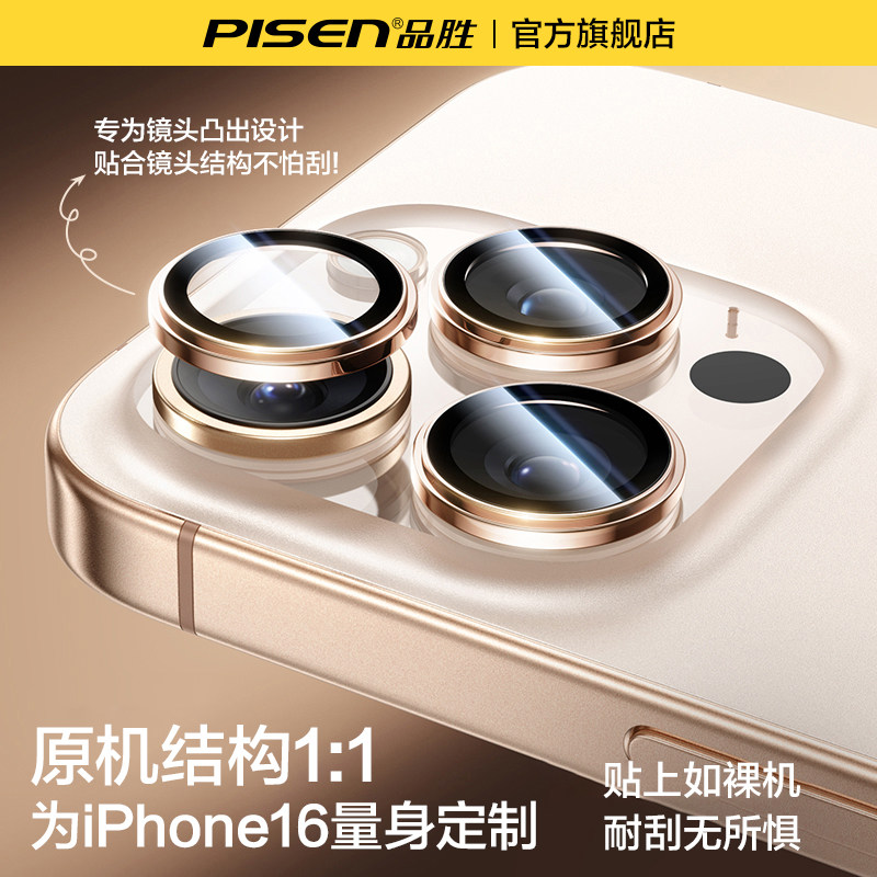 品胜适用苹果16ProMax镜头膜iPhone15Pro手机镜头保护膜16Pro后摄像头贴膜16Plus新款15plus高清全包一体防摔