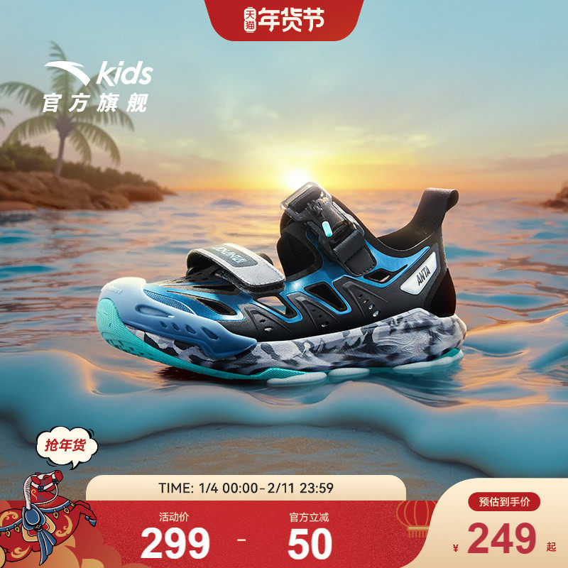 清羽|安踏儿童男大童沙滩鞋2025夏季新款透气防滑包头凉鞋商场款
