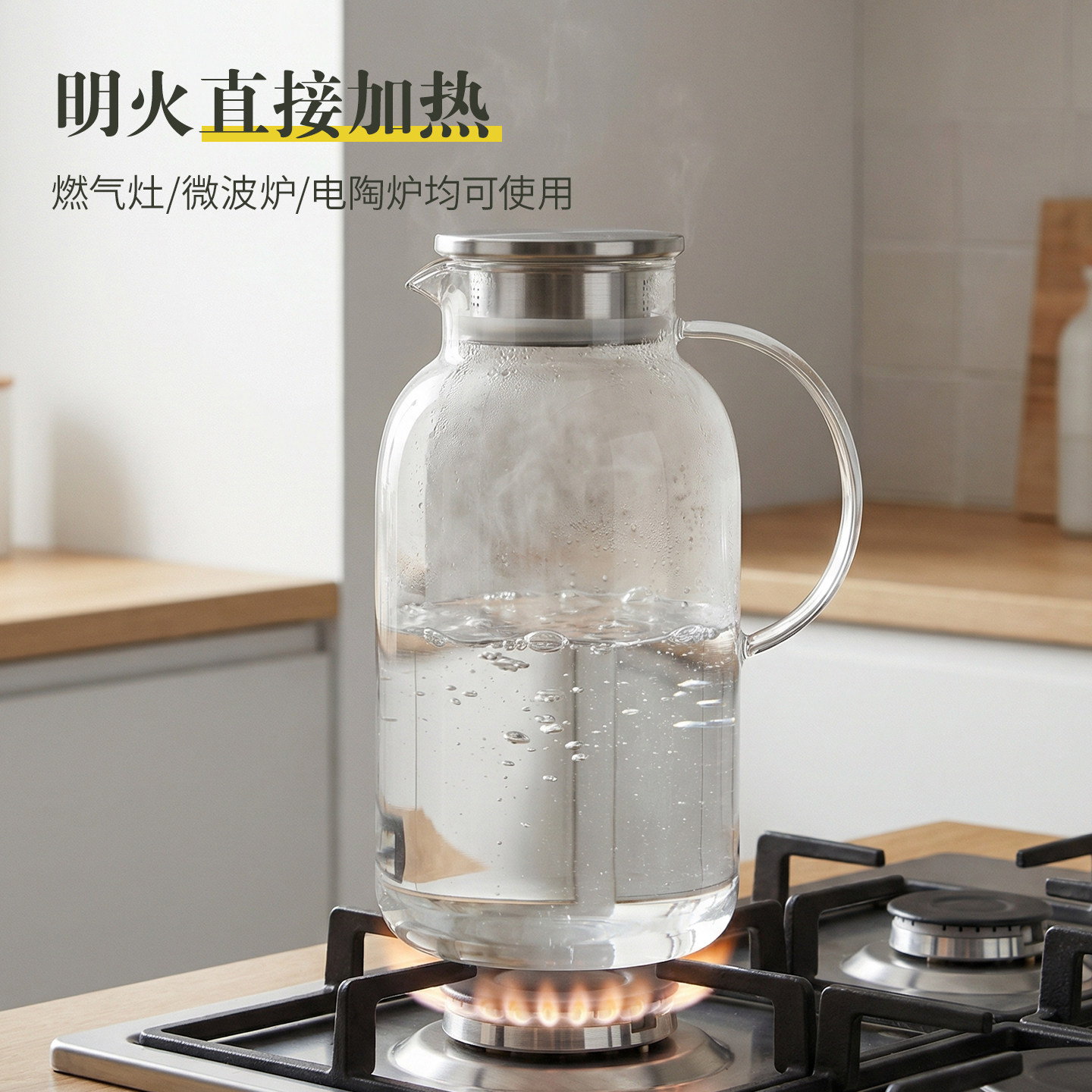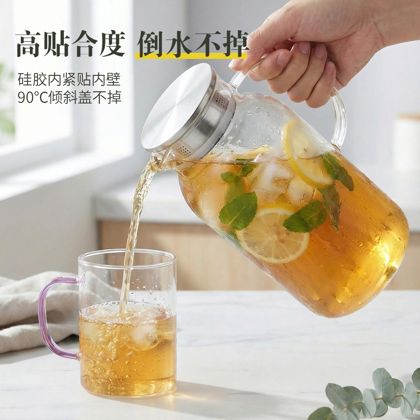 青苹果冷水壶玻璃凉水壶大容量泡茶壶家用耐高温水杯储水果汁扎壶