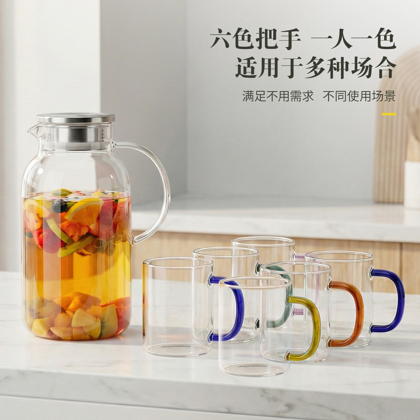 家用耐高温冷水壶大容量冰箱玻璃凉水壶冷泡壶茶壶凉水杯装水套装