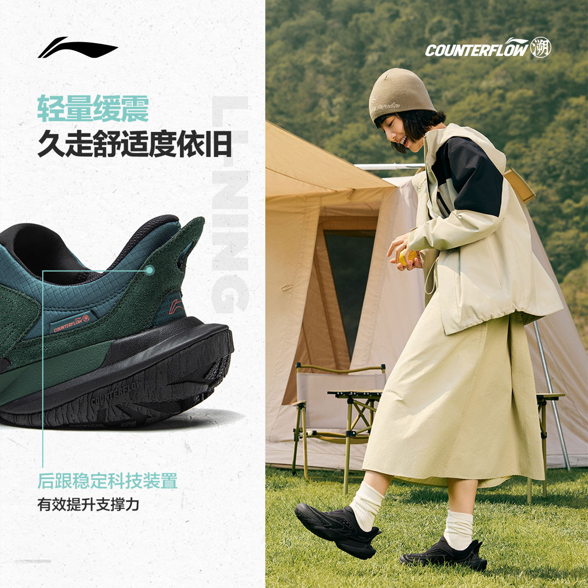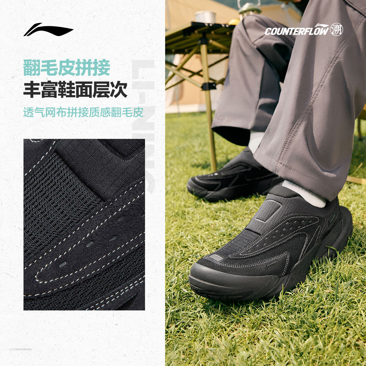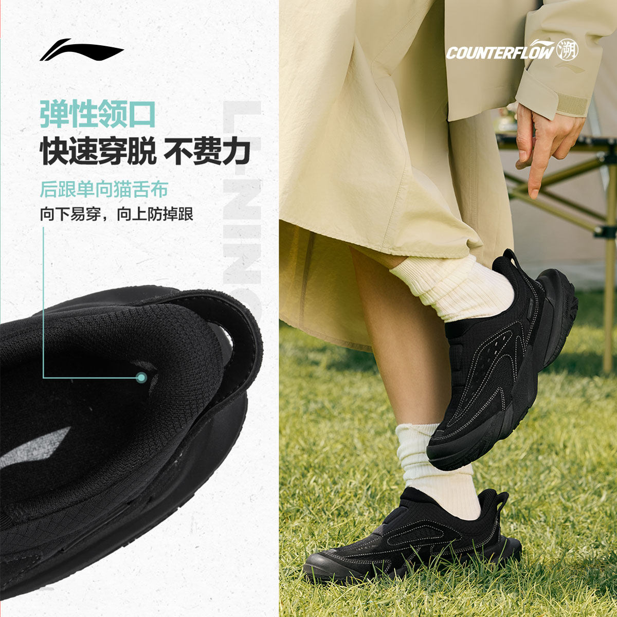 李宁CF溯行山丨休闲鞋男女百搭新款回弹鞋子一脚蹬户外徒步运动鞋