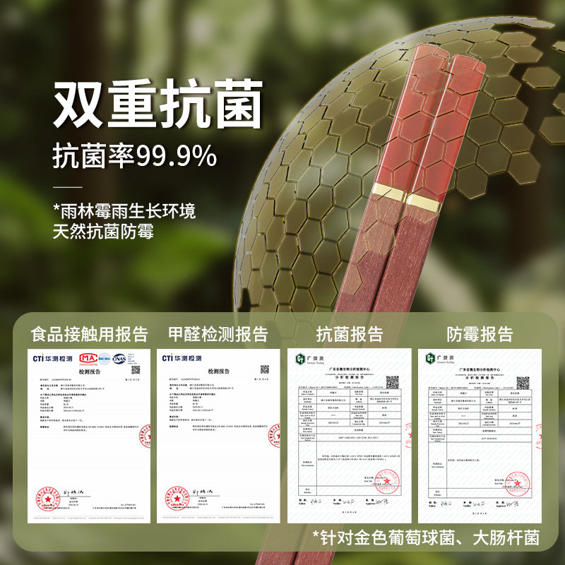 唐宗筷鸡翅木筷子家用新款无漆无蜡防霉抗菌中式实木筷可进洗碗机
