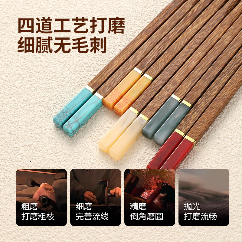 高档鸡翅木筷子家用2025新款耐高温商用防滑无漆无蜡快子实木加长