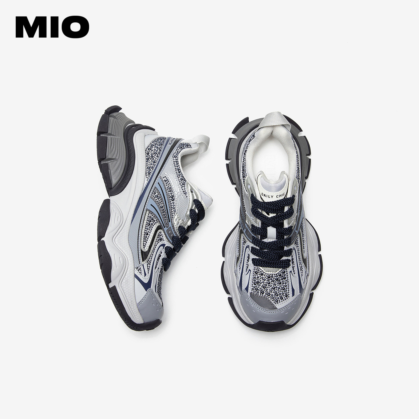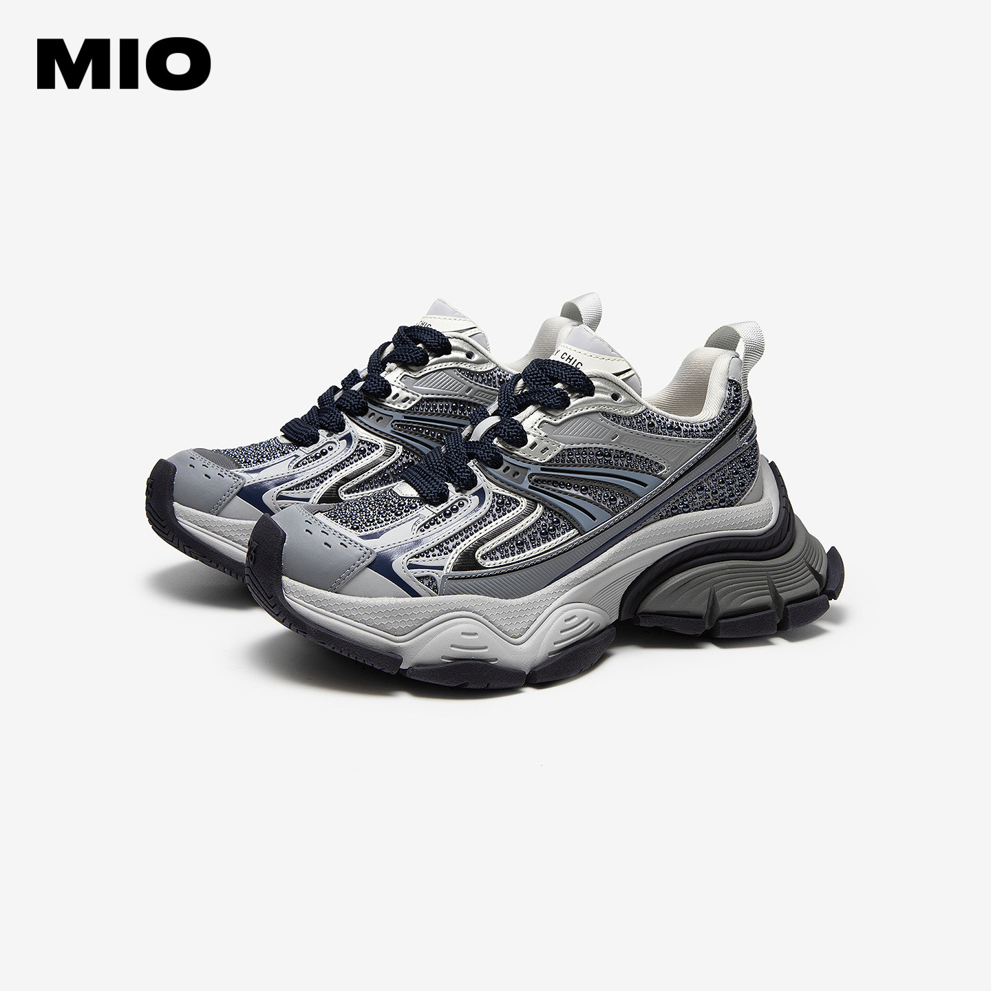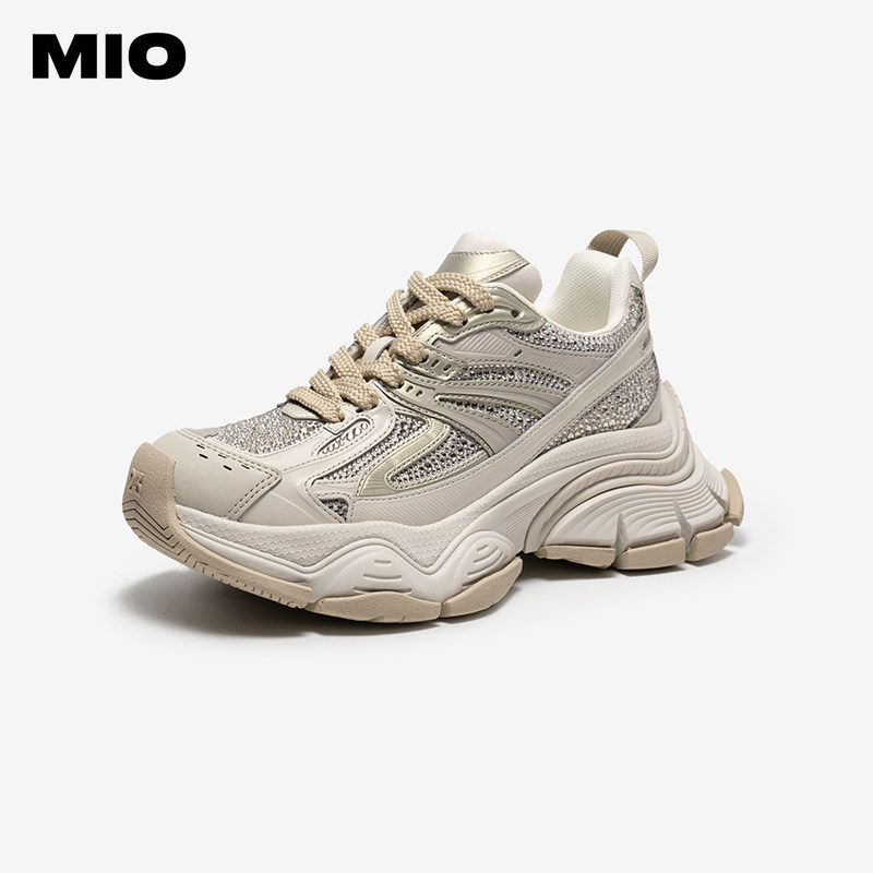 MIO米奥时尚休闲鞋2026春季新款圆头厚底增高闪钻运动鞋复古女鞋