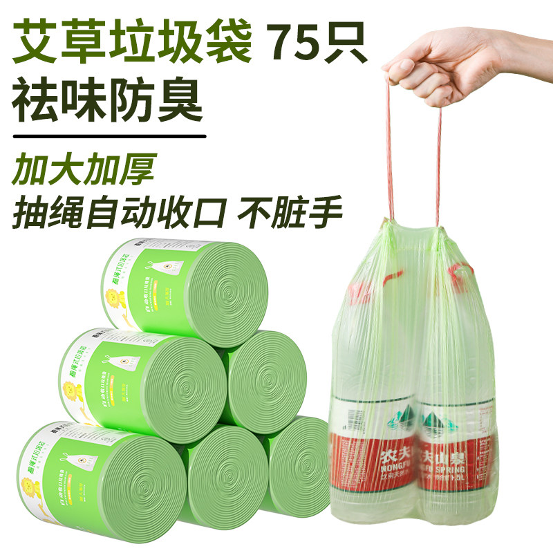 艾草垃圾袋防臭家用加厚手提式抽绳厨房专用耐用大卷塑料袋不易破