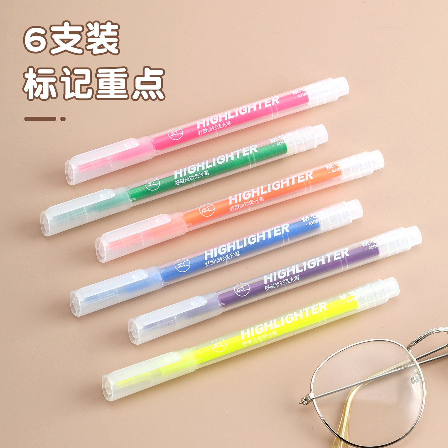 晨光荧光笔小方芯新国色荧光标记笔学生用记号笔彩色划重点专用笔