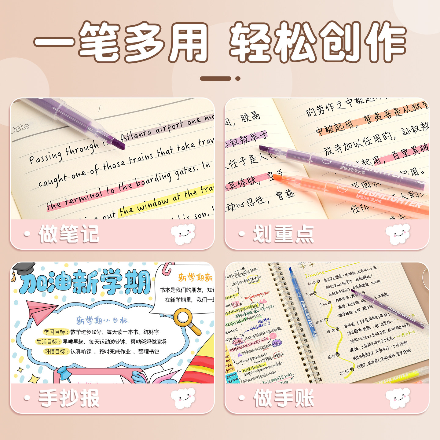 猫太子荧光笔小学生专用划重点可叠色记号笔彩色不晕染初中生高中生做笔记双头标记可擦高颜值ins风儿童无毒