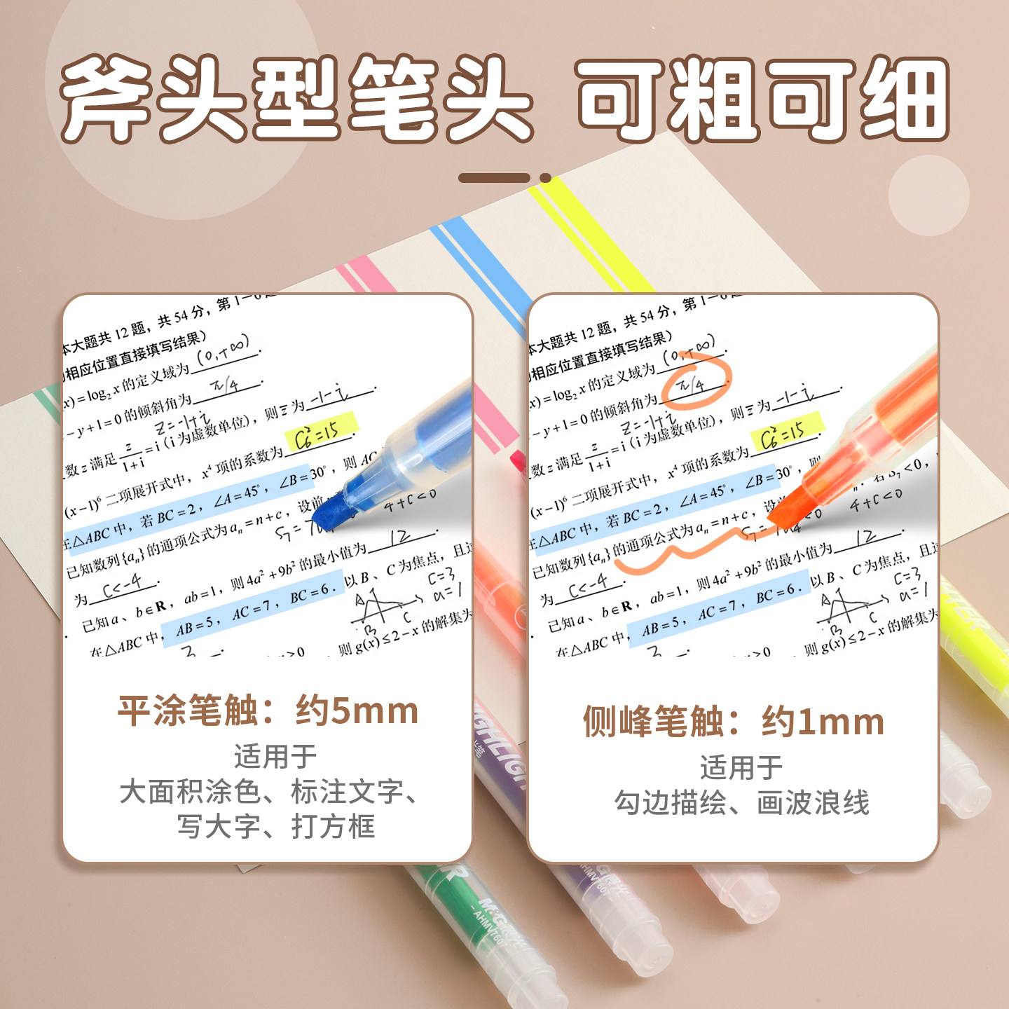 点石三角杆荧光笔12色记号笔简约学生划重点标记笔套装柔色手账笔