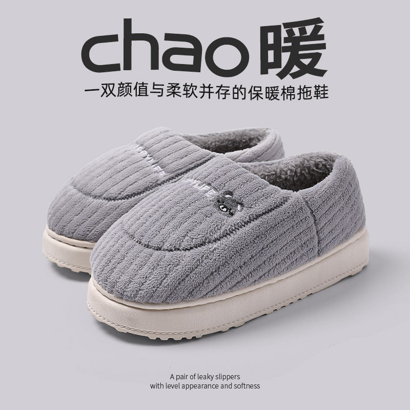 棉拖鞋男士冬季包跟室内家居家用保暖加绒厚底防滑毛毛女棉鞋男款