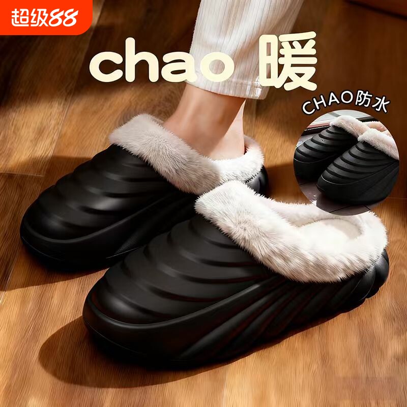 居家保暖棉拖鞋女士加绒厚底情侣棉鞋防滑防水雪地可外穿棉拖男款